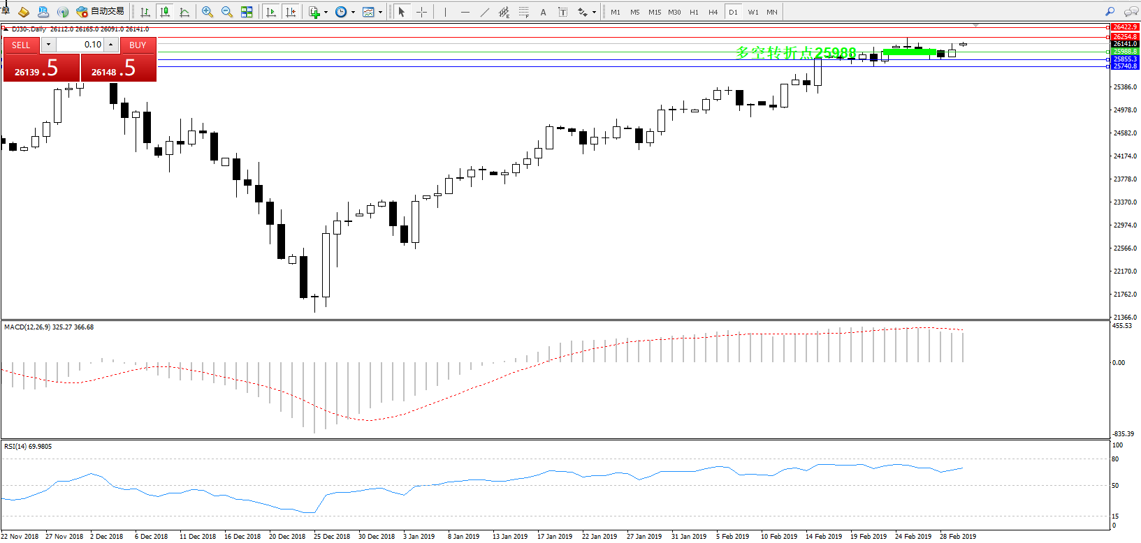 交易策略:25988上方看涨,目标26254、26422