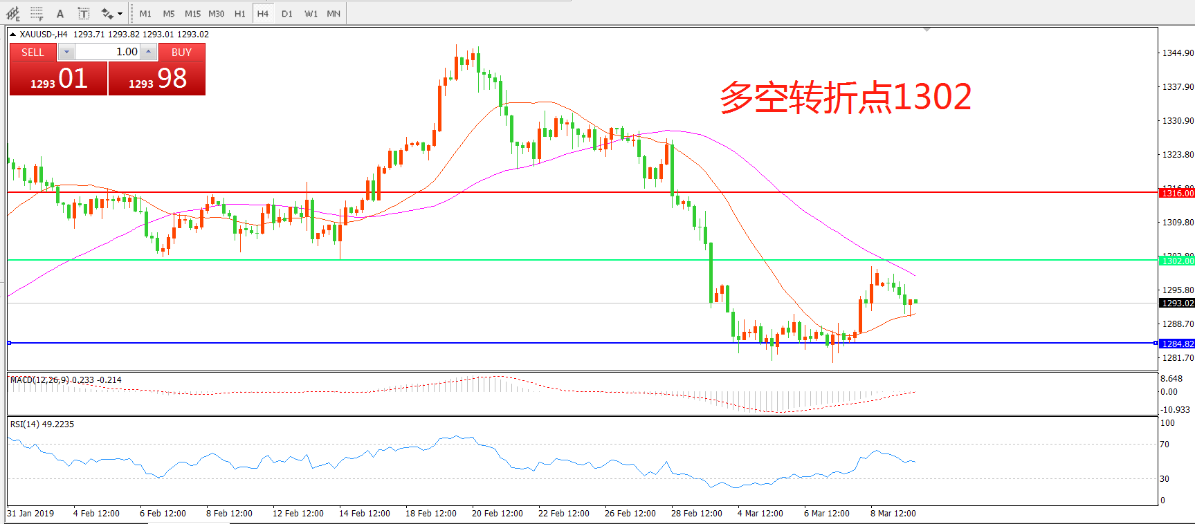 多空转折点:1302.00