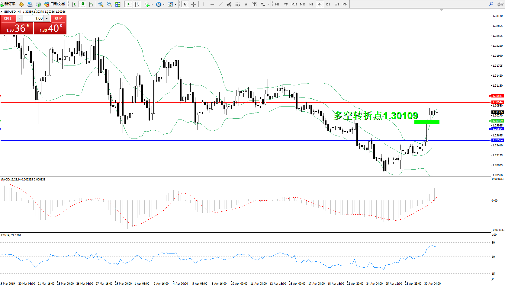 交易策略:1.30109上方看涨,目标1.306441.30831
