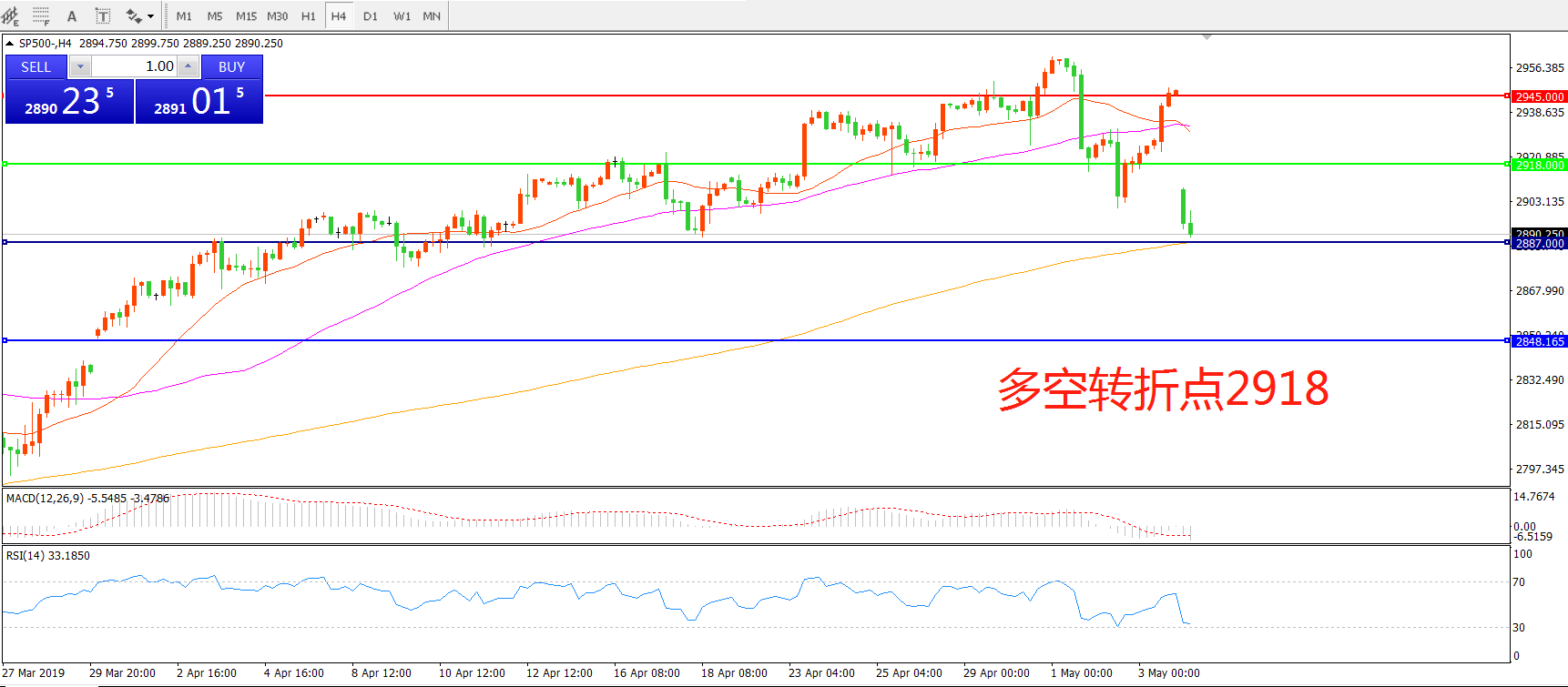 多空转折点:2918.00
