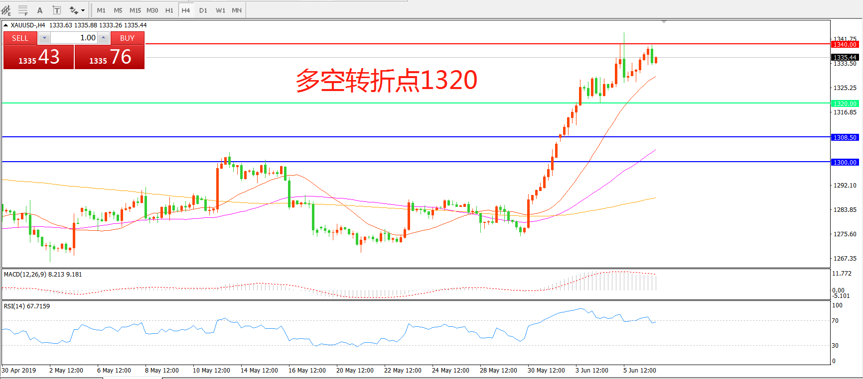 多空转折点:1320.00
