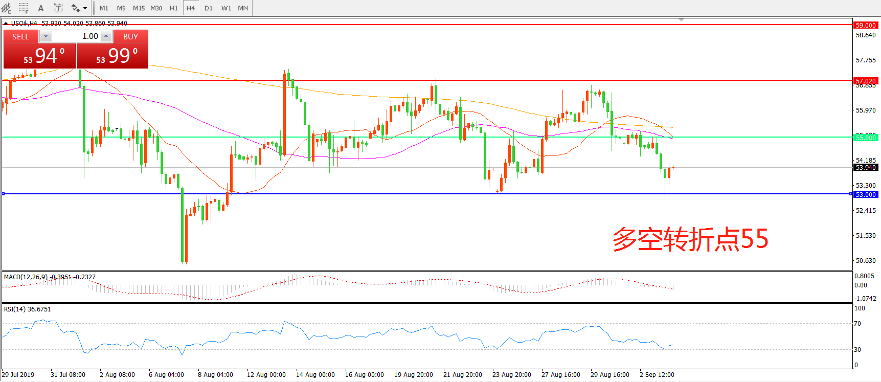 多空转折点:55.00