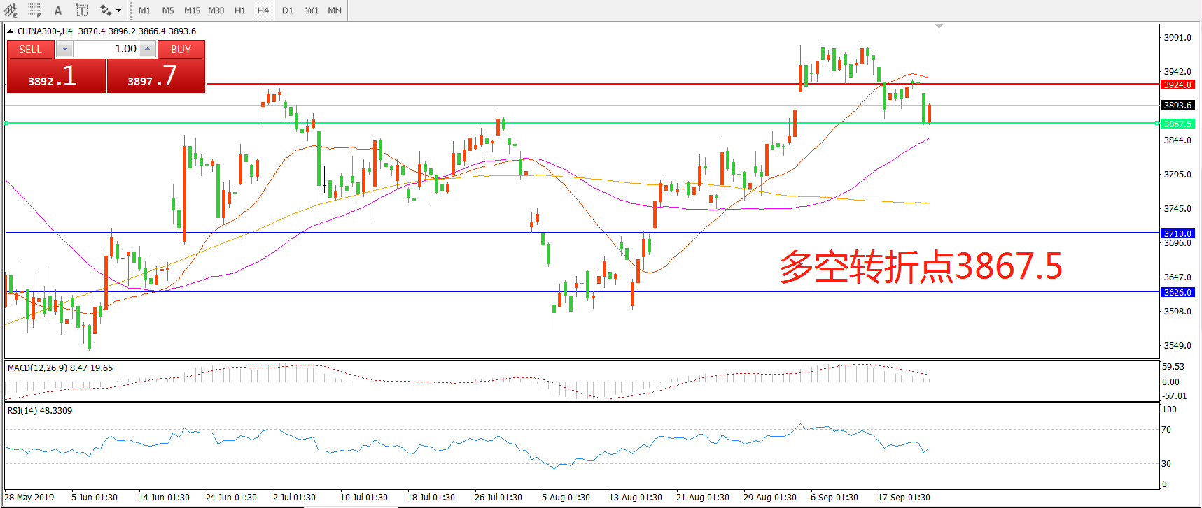 多空转折点:3865.50