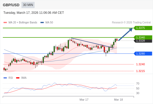 在 1.3280 之上,看涨,目标价位为 1.3340 ,然后为 1.3375 。
