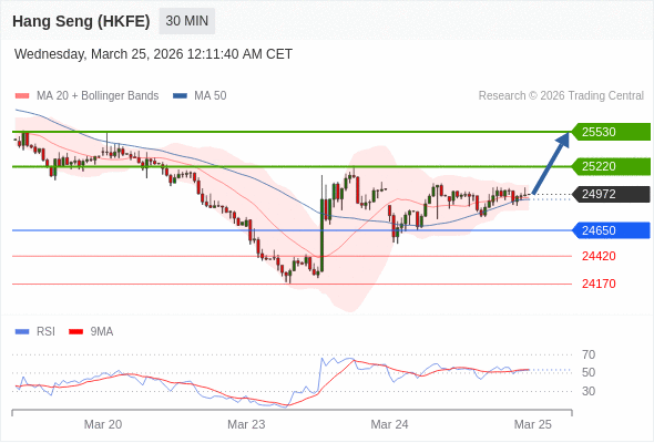 在 24650 之上,看涨,目标价位为 25220 ,然后为 25530 。