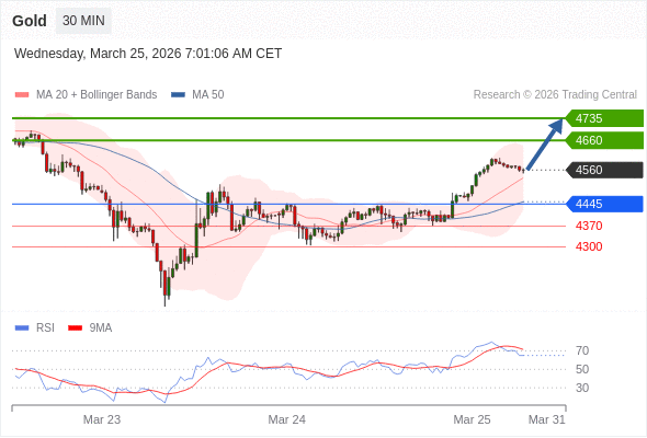 在 4445 之上,看涨,目标价位为 4660 ,然后为 4735 。