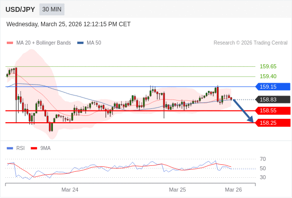 在 159.15 之下,看跌,目标价位为 158.55 ,然后为 158.25 。