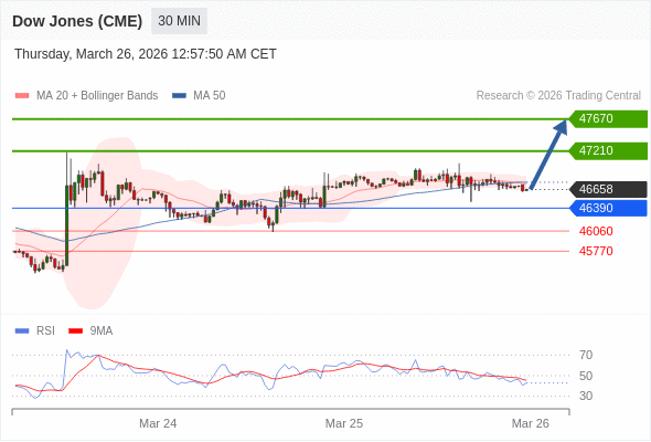 在 46390 之上,看涨,目标价位为 47210 ,然后为 47670 。