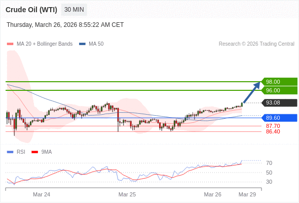 在 89.60 之上,看涨,目标价位为 96.00 ,然后为 98.00 。