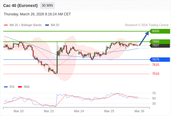 在 7675 之上,看涨,目标价位为 7880 ,然后为 8000 。