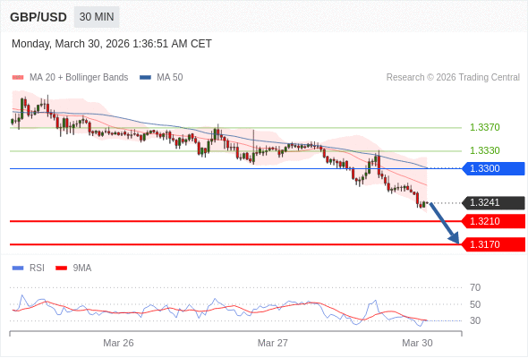 交易策略: 在 1.3300 之下,看跌,目标价位为 1.3210 ,然后为 1.3170 。