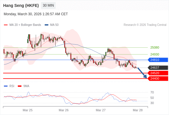 在 24810 之下,看跌,目标价位为 24520 ,然后为 24400 。