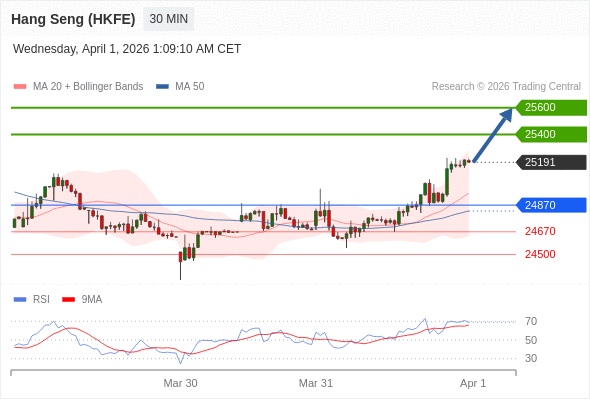 在 24870 之上,看涨,目标价位为 25400 ,然后为 25600 。