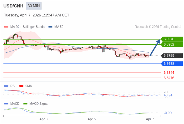 替代方案: 在6.8658以下,期待6.8544和6.8476。