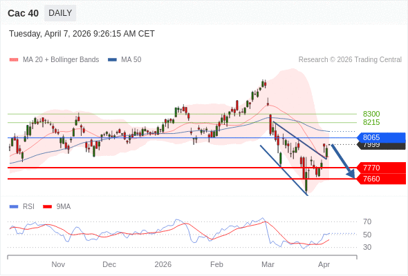 在 8065 之下,看跌,目标价位为 7770 ,然后为 7660 。