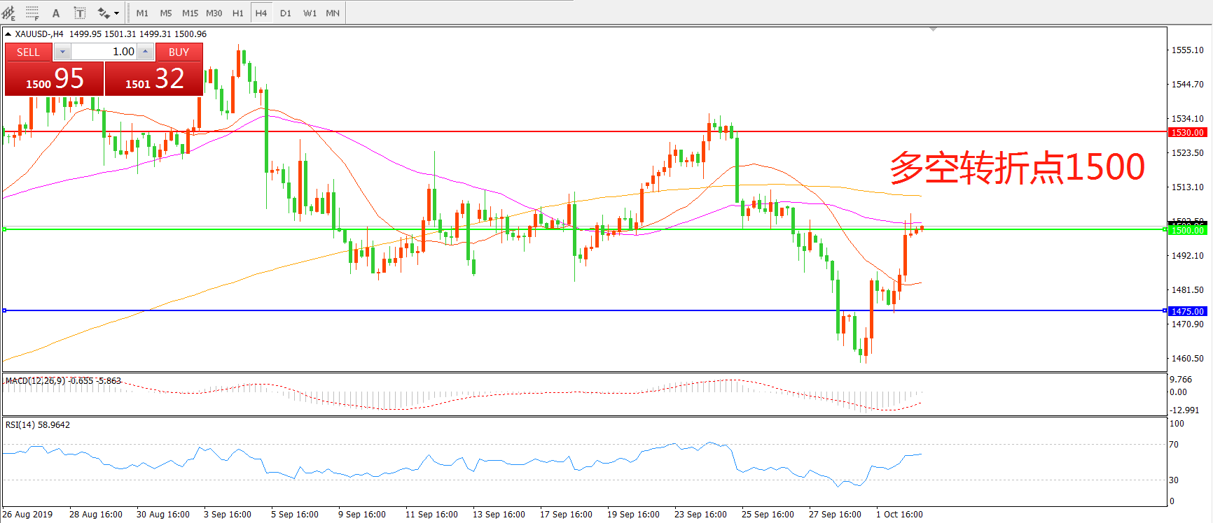 多空转折点:1500.00