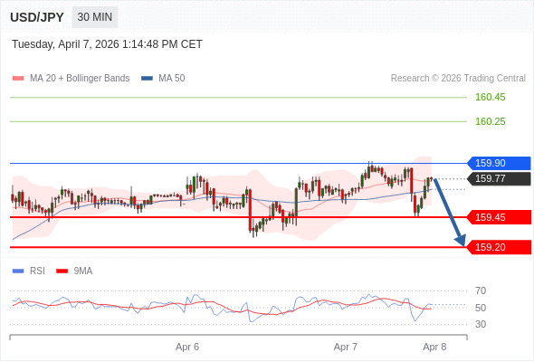 在 159.90 之下,看跌,目标价位为 159.45 ,然后为 159.20 。
