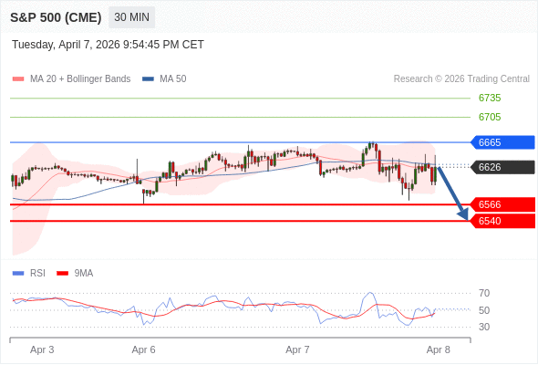 在 6665 之下,看跌,目标价位为 6566 ,然后为 6540 。