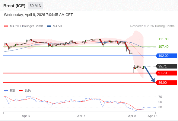 交易策略: 在 102.00 之下,看跌,目标价位为 91.70 ,然后为 86.00 。