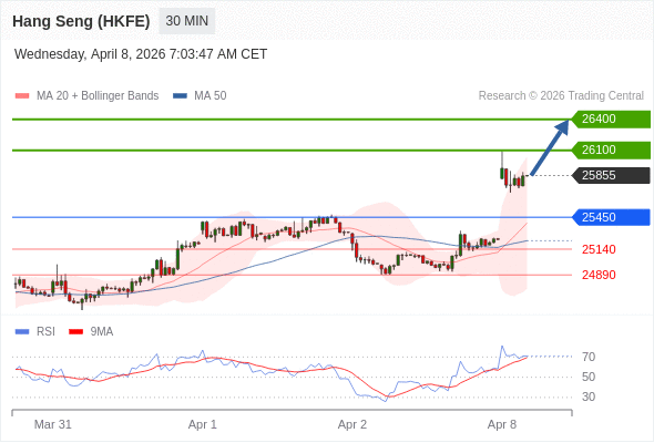 在 25450 之上,看涨,目标价位为 26100 ,然后为 26400 。