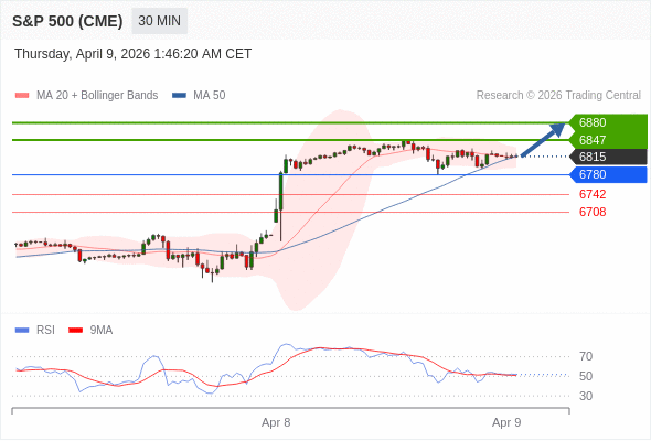 在 6780 之上,看涨,目标价位为 6847 ,然后为 6880 。