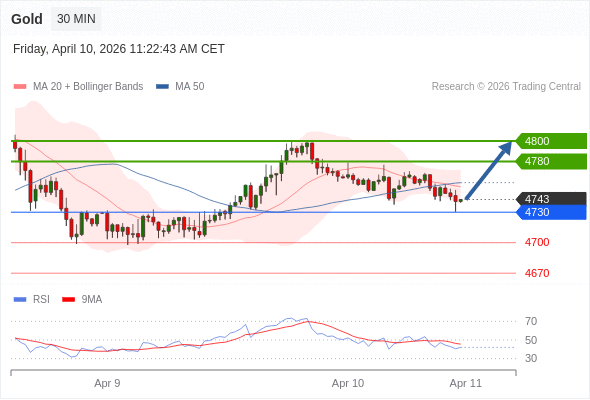 在 4730 之上,看涨,目标价位为 4780 ,然后为 4800 。