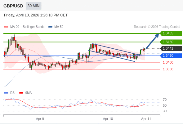 在 1.3420 之上,看涨,目标价位为 1.3460 ,然后为 1.3485 。