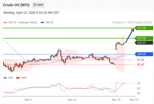 交易策略: 在 100.00 之上,看涨,目标价位为 107.00 ,然后为 111.50 。