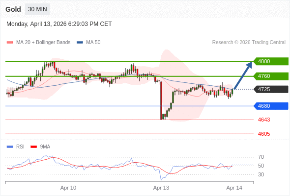 在 4680 之上,看涨,目标价位为 4760 ,然后为 4800 。