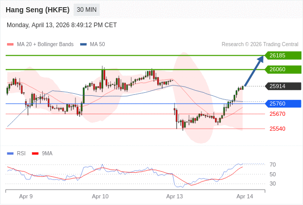 在 25760 之上,看涨,目标价位为 26060 ,然后为 26185 。
