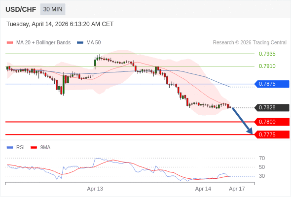 在 0.7875 之下,看跌,目标价位为 0.7800 ,然后为 0.7775 。