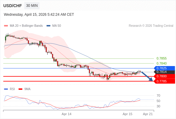 在 0.7825 之下,看跌,目标价位为 0.7800 ,然后为 0.7785 。