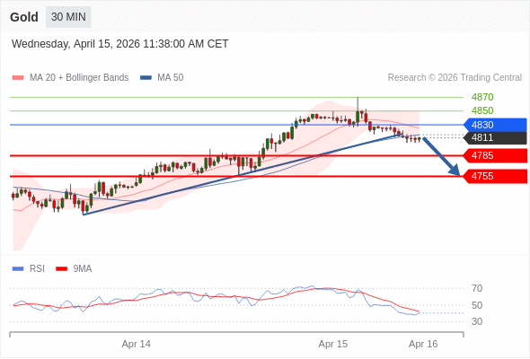 在 4830 之下,看跌,目标价位为 4785 ,然后为 4755 。