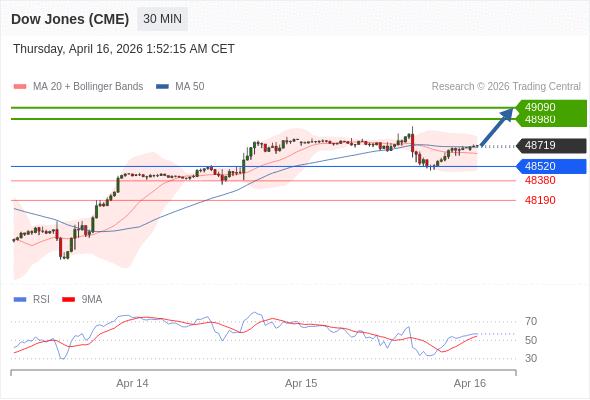 在 48520 之上,看涨,目标价位为 48980 ,然后为 49090 。