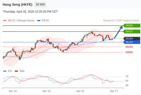 在 26140 之上,看涨,目标价位为 26410 ,然后为 26560 。