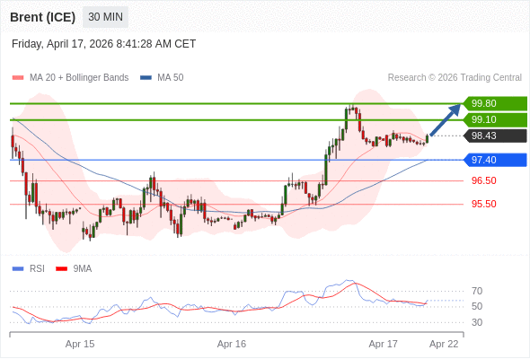 布伦特原油 (ICE) (M6) 当日内: 目标位为99.80。