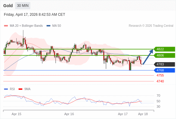 在 4768 之上,看涨,目标价位为 4806 ,然后为 4822 。