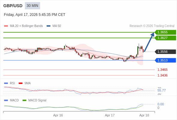 交易策略: 看涨,当 1.3513 为支撑位。