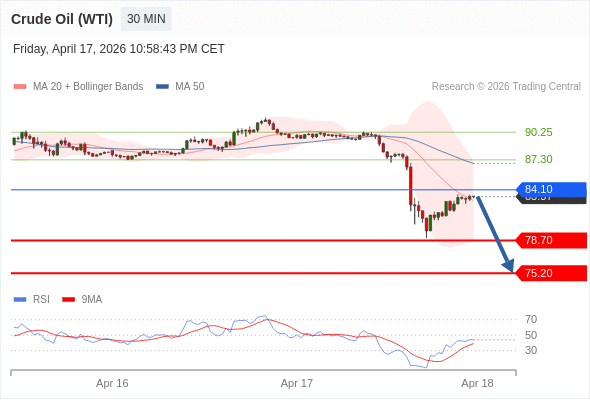 交易策略: 在 84.10 之下,看跌,目标价位为 78.70 ,然后为 75.20 。