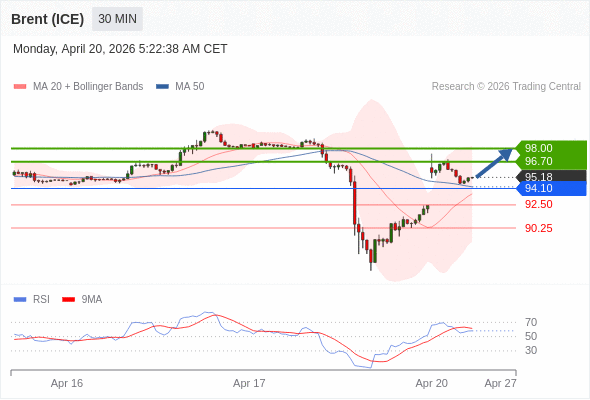 在 94.10 之上,看涨,目标价位为 96.70 ,然后为 98.00 。