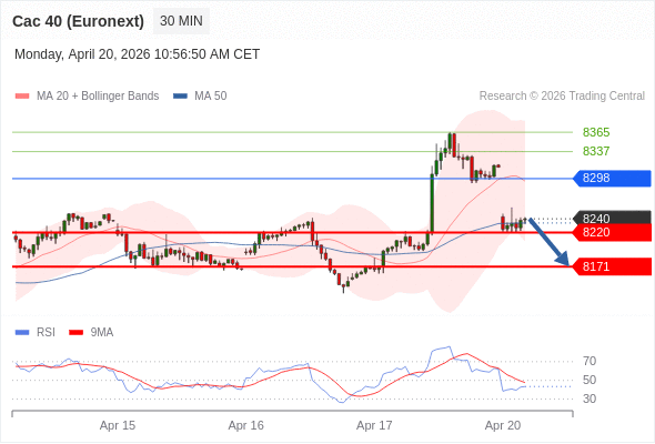 在 8298 之下,看跌,目标价位为 8220 ,然后为 8171 。