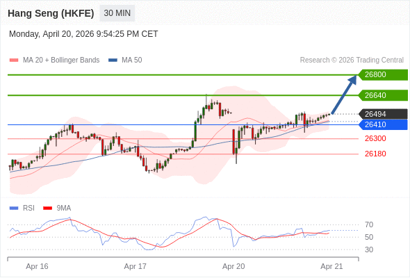 在 26410 之上,看涨,目标价位为 26640 ,然后为 26800 。