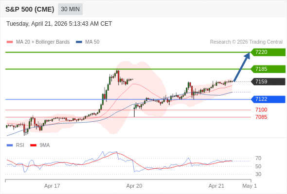 在 7122 之上,看涨,目标价位为 7185 ,然后为 7220 。