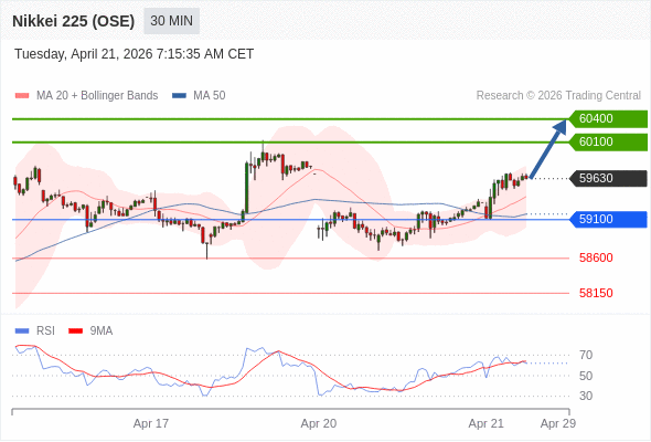 在 59100 之上,看涨,目标价位为 60100 ,然后为 60400 。