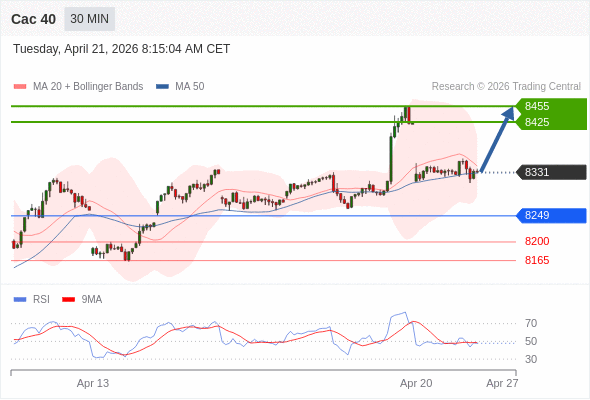 在 8249 之上,看涨,目标价位为 8425 ,然后为 8455 。