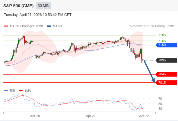 在 7150 之下,看跌,目标价位为 7045 ,然后为 7015 。