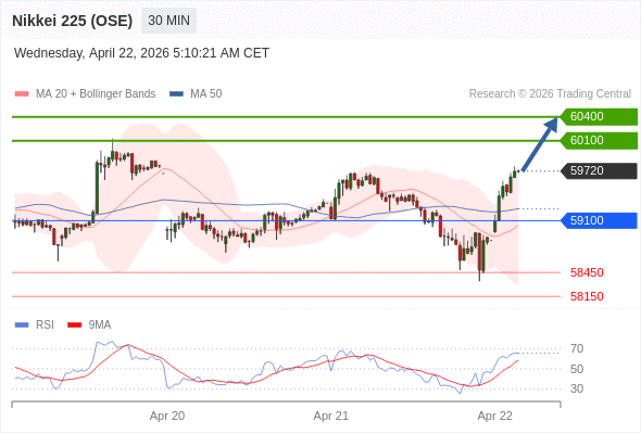在 59100 之上,看涨,目标价位为 60100 ,然后为 60400 。