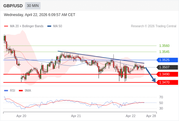 在 1.3525 之下,看跌,目标价位为 1.3490 ,然后为 1.3470 。