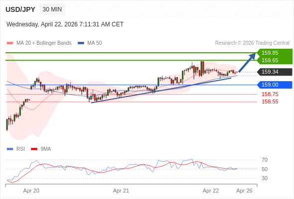 在 159.00 之上,看涨,目标价位为 159.65 ,然后为 159.85 。