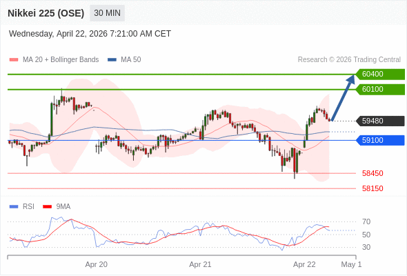 在 59100 之上,看涨,目标价位为 60100 ,然后为 60400 。
